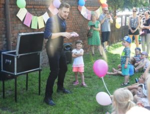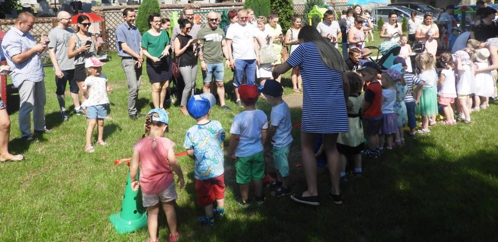 W dniu 07.06.2019 w Przedszkolu przy ul. Wolności odbył się Piknik Rodzinny. Na spotkanie licznie przybyli rodzice, przedszkolaki z grupy Jagódki i Stokrotki wraz z rodzeństwem oraz maluszki z grupy Poziomki. Dla naszych przedszkolaków był to ważny dzień, ponieważ uczestniczyły one w uroczystym Pasowaniu na Przedszkolaka. Kolejną atrakcją podczas tegorocznego pikniku był występ iluzjonisty – Pana Mariusza Czajki. Dzieci z radością uczestniczyły w zabawie, dzielnie asystując Panu Mariuszowi podczas kolejnych, magicznych sztuczek. Panie opiekunki, cierpliwie malowały dziecięce buźki, zmieniając je w kotki, pieski, tygryski i innych bohaterów bajek. Na koniec spotkania, dzieci wraz z rodzicami brały udział w mini Olimpiadzie sportowej i zabawie integracyjnej. Na pikniku nie mogło również zabraknąć grillowanych kiełbasek, waty cukrowej i innych łakoci. Wszystkim uczestnikom dziękujemy za wspaniałą zabawę, a pracownikom przedszkola za przygotowanie imprezy. Do zobaczenia za rok 😊