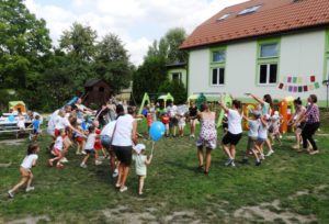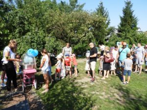 17.08.2018 w ogrodzie przedszkolnym przy ul. Marii Konopnickiej odbył się piknik rodzinny. Tego dnia najmłodsze pociechy z grupy Biedronki zostały przyjęte w poczet przedszkolaków poprzez uroczyste Pasowanie. Podczas tegorocznego pikniku świętowaliśmy również 5 rocznicę powstania naszego przedszkola. Dzieci wraz z rodzicami miały okazję wykazać się wiedzą o naszym przedszkolu podczas konkursu. Okazało się, że każda z drużyn otrzymała taką samą ilość punktów, odpowiadając na wszystkie zadane pytania. Wszyscy uczestnicy konkursu zostali jego zwycięzcami, na pamiątkę drużyny otrzymały upominki. Oprócz pasowania na przedszkolaka i konkursu, nasi goście wspaniale bawili się podczas tańców integracyjnych oraz zabawy terenowej. Nie zabrakło również waty cukrowej dla naszych milusińskich oraz tradycyjnego grilla. Dziękujemy wszystkim uczestnikom za wspaniałą zabawę. Do zobaczenia za rok!