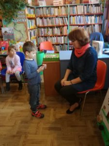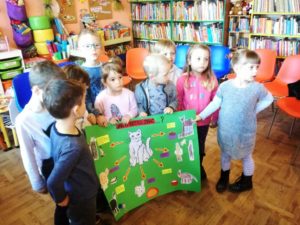 Dzieci z grupy ,,Wesołe Misie” po raz drugi w obecnym roku przedszkolnym uczestniczyły w zajęciach z Panią Dorotą Sionkowską w ,,Bibliotecznej Akademii Malucha”. Tegoroczny cykl spotkań dotyczy zwierząt, jak również opieki nad nimi.