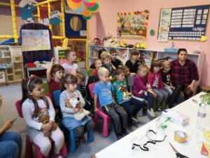 23 listopada dzieci z grupy Smerfy miały okazję wcielenia się w nową rolę i zaobserwowania ciekawych „ eksperymentów chemicznych” , w których udział wzięli również rodzice. Tego dnia w naszej grupie gościliśmy panią Katarzynę Sikorę- mamę Juliana , panią Ewelinę Rybszleger- mamę Nikodema oraz Panią Annę Rytel – mamę Ziemka. W trakcie spotkania dzieci zaprosiły do wspólnych tańców, śpiewów oraz zabawy swoje ukochane mamy. Uwieńczeniem wizyty było zgromadzenie się w „mini laboratorium”, gdzie swoje umiejętności oraz wiedzę przekazała nam pani Ania, która na co dzień pracuje w laboratorium. Dzieci miały okazję do zapoznania się z zasadami , których zależy przestrzegać podczas tworzenia doświadczeń , a także samodzielnie wzięły udział w eksperymentowaniu. Wszystkie przedszkolaki oraz mamy były zachwycone przedstawionymi doświadczeniami. Tego dnia mieliśmy przyjemność zaobserwować powstawanie tęczy , która została wydobyta z jednej podstawowej barwy, nadmuchiwanie balona bez użycia ust, a także powstawanie iskierek. Serdecznie dziękujemy za wspaniałe przygotowanie wielu atrakcji chemicznych pani Ani, a także przybyłym gościom za wspólną zabawę i miło spędzony czas z przedszkolakami.