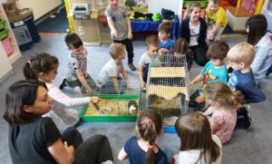 Dobro zwierząt jest dla dzieci bardzo ważne. Bardzo często poruszane zostają tematy dotyczące odpowiedniego sprawowania opieki i odpowiedzialności, jaką niesie posiadanie zwierząt. 29 marca przedszkolaki powitały swoich długo wyczekiwanych rodziców. Do sali „Smerfów” przybyła pani Karina- mama Kornelki, pani Ewa- mama Wojtka oraz pani Karolina- mama Darii. Tego dnia na przedszkolaki czekała ogromna niespodzianka. Po wprowadzeniu dzieci w tematykę, dokonaliśmy podziału właściwego i niewłaściwego zachowania człowieka wobec zwierząt. Uwieńczeniem spotkania były przyniesione przez dzieci zwierzęta ; świnka morska „Franek”, szynszyla oraz żółw „Kubuś”. Radość dzieci była bezcenna . Dziękujemy rodzicom za przyniesienie swoich pupili do placówki oraz za wspólną zabawę.