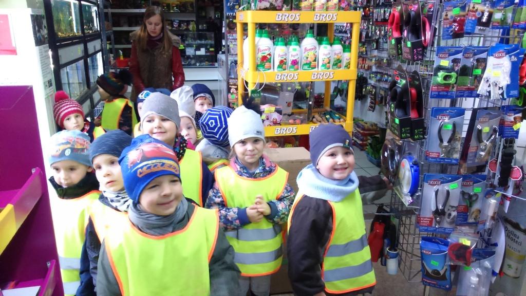 W dniu 27.10.2017 Przedszkolaki z grupy Skrzaty w ramach tygodnia związanego z tematyką zwierząt domowych udały się do pobliskiego sklepu zoologicznego. Podczas wizyty dzieci podziwiały różnego rodzaju zwierzęta m.in.: kolorowe rybki, świnki morskie, chomiki, papugi, kanarki, jak również wiele innych przydatnych artykułów do opieki nad zwierzętami.