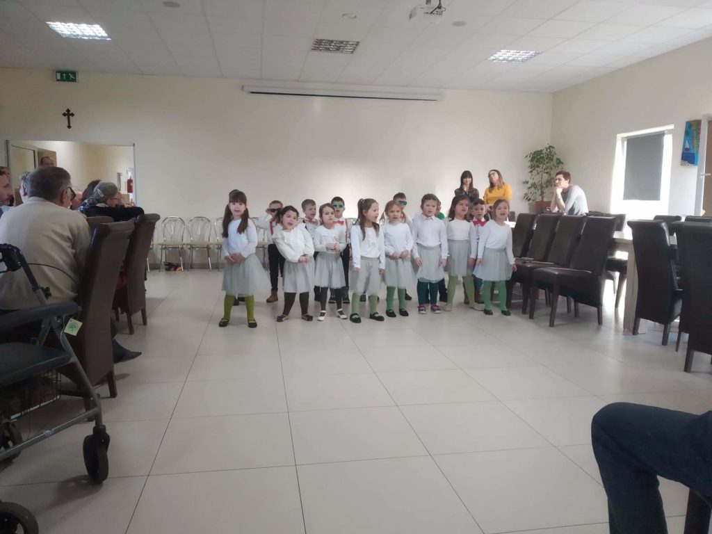 Dnia 22.01.2020 r. Grupa „Smerfy” odwiedziła Stowarzyszenie Szansa na Zdrowie Środowiskowy Dom Samopomocy we Wroniu. Celem wizyty był występ z okazji Dnia Babci i Dziadka. Dla smerfów był to pierwszy występ w tego rodzaju miejscu. Przedszkolaki z wielką radością zaprezentowały swój występ. Na twarzach widowni był widoczny uśmiech oraz wzruszenie co zmotywowało Nas do dalszej współpracy. Z miłą chęcią przedszkolaki odwiedzą Środowiskowy Dom Samopomocy we Wroniu z kolejnym przedstawieniem.