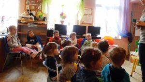 12 października odbyło się pierwsze w tym roku spotkanie „Smerfów’ z Panią Bibliotekarką Dorotą Sionkowską. Podczas wizyty dzieci wysłuchały utworu pt: ” Zuzia i jej kotek”, gdzie głównymi bohaterami spotkania były kotki. Przedszkolaki całoroczny cykl rozpoczęły od przypomnienia zasad panujących w bibliotece oraz od wspólnych zabaw przy muzyce.