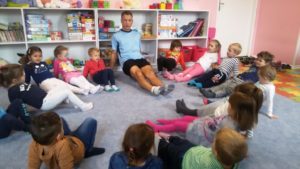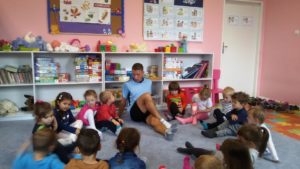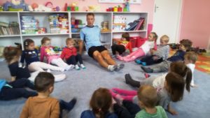 Dnia 12 października dzieci z grupy Smerfy rozpoczęły cykl spotkań z Panem Miłoszem Gębką. Pan Miłosz poprowadzi zajęcia z gimnastyki korekcyjno-kompensacyjnej, gimnastyki ogólnej oraz ćwiczenia kształtujące nawyk prawidłowej postawy.