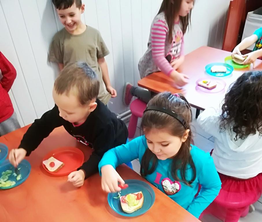 Dnia 29.11.2019 w ramach podstawy programowej grupa „Smerfy” poruszyła tematykę związaną ze zdrowym odżywianiem .Omówiliśmy piramidę zdrowia. Rozmawialiśmy o zdrowym odżywianiu, dokonaliśmy podziału żywności na zdrową i niezdrową. Podsumowaniem tygodniowej tematyki było samodzielne wykonanie zdrowej pełnej witamin kanapki na drugie śniadanie oraz uzupełnienie witamin o różnego rodzaju owoce.